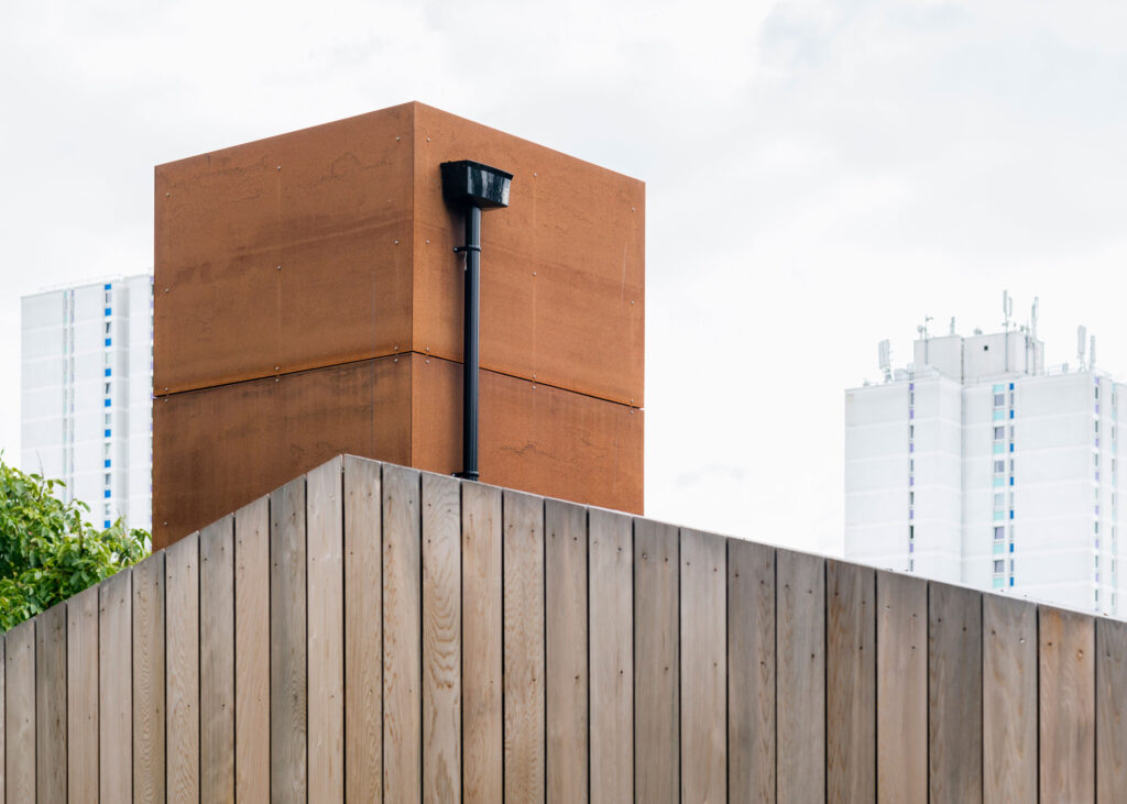 Our new wildlife and study centre for Roots and Shoots; an award winning environmental and educational charity, replaces an outdated building which was originally built as a civil defence base during World War II. Sleek, vertical cladding covers the roof and walls, contrasting a rustic six metre high Corten steel tower that marks the building’s entrance and signposts the centre. The tower not only marks the entrance but is also an interactive environmental education tool, housing a weather vane, sundial, a bee observation hive and bird boxes at high level. A highly sustainable approach has been adopted in designing the new wildlife study centre.