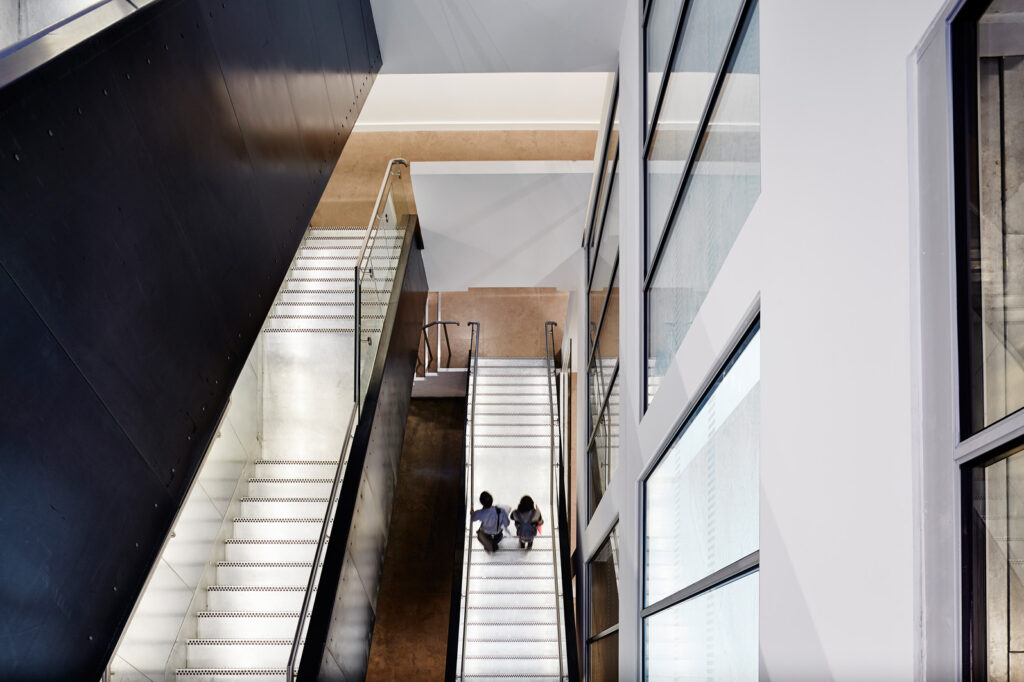 A bold intervention transforming a key university building. The Guntons Building is a key building on the Norwich University of the Arts campus. Before our intervention Guntons Atrium was dark, dated and difficult to navigate. By inserting a large glazed atrium at the heart of the building we have utterly transformed its appearance and usability. A striking steel staircase now connects departments that were once separated, while daylight is brought deep into the creative studios.