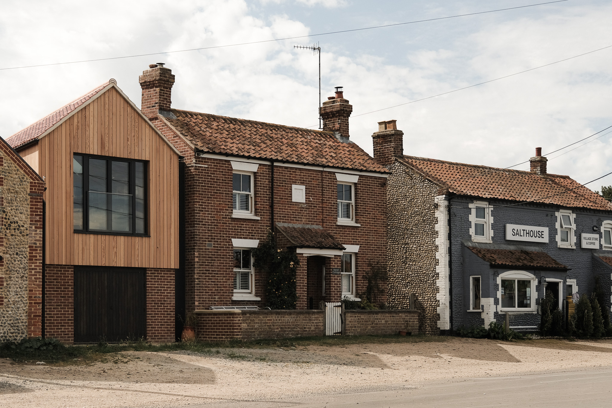 Salthouse Cottage is a carefully considered extension to an existing coastal cottage, transforming a group of dilapidated outbuildings into a light-filled, functional living space designed around modern family life. Set within an unusual triangular plot, the layout was shaped to maximise usable space while making full use of long views across the marshes and out to sea. Positioning the main living area on the first floor allows the extension to engage directly with its wider landscape and sense of place.