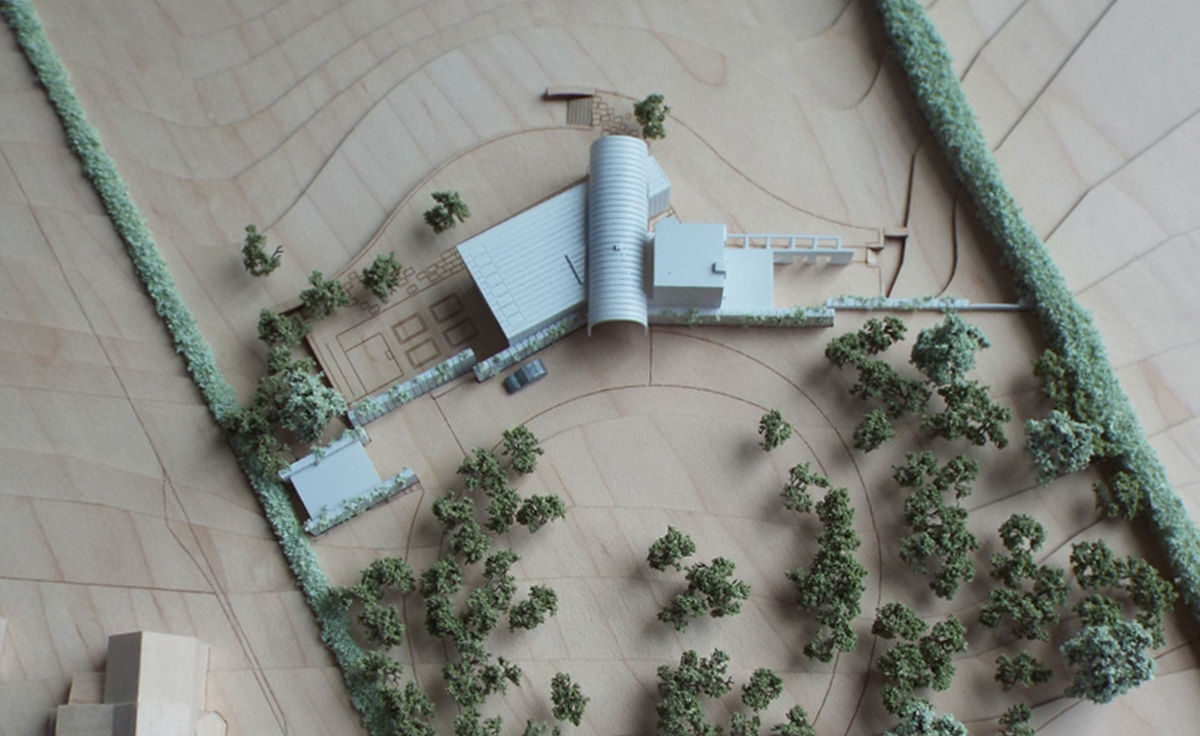 The choice of exterior materials pays homage to the local landscape. The gabion walls showcase local yellow oolitic Jurassic limestone, akin to the stone field walls. Meanwhile the main structure along with the inverted lean-to is clad in zinc mirroring the corrugated metal facades of nearby barns and agricultural lean-tos. For the tower building, a lime render is employed, a nod to domestic buildings.