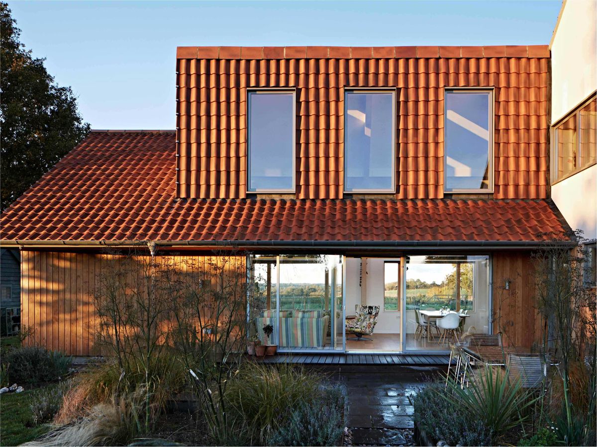 Natural and sustainable materials were used wherever possible. By choosing a prefabricated timber-frame we were able to minimise material waste and maximise airtightness. The building was positioned to make the most of natural light and maximise solar gain from the south. Photovoltaics provide heating and hot water, while underfloor heating is connected to a ground source heat pump. Deep eaves were constructed over the veranda to prevent overheating in the summer while maximising penetration of natural light through winter