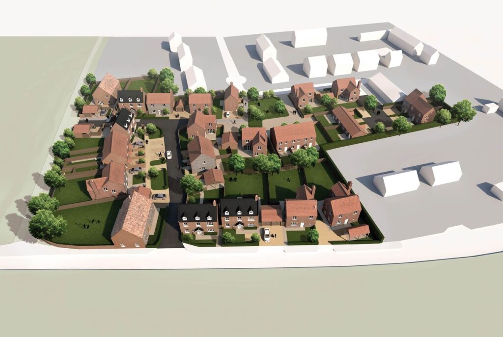 Walsingham Road sees the development of twenty eight residential units (Class C3) with associated highway, landscape works and a new pumping station on the edge of the rural village of Binham in North Norfolk. The development, on behalf of Broadland St Benedicts, will mend a corner of the village, which has been eroded by piecemeal development in previous years. The design is informed by the particular character of Binham and was developed alongside all stakeholders to ensure that the new site will complement and enhance Binham’s unique qualities.