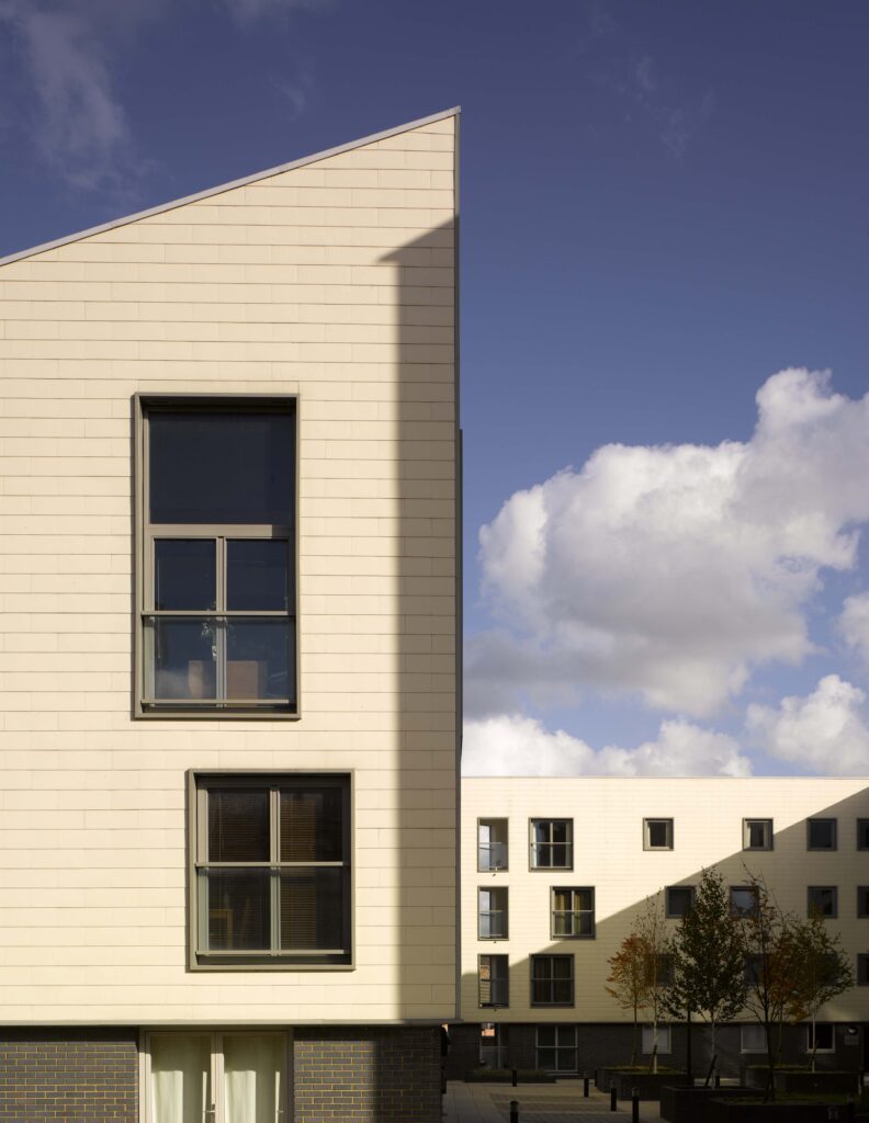 Situated on the sloping site of a 14th century friary, elements of which can still be seen and memories of which have been incorporated, this mixed-use development in Norwich is a combination of affordable and commercial homes, comprising one-bedroom and two-bedroom dual and single aspect apartments, commercial units, and offices.